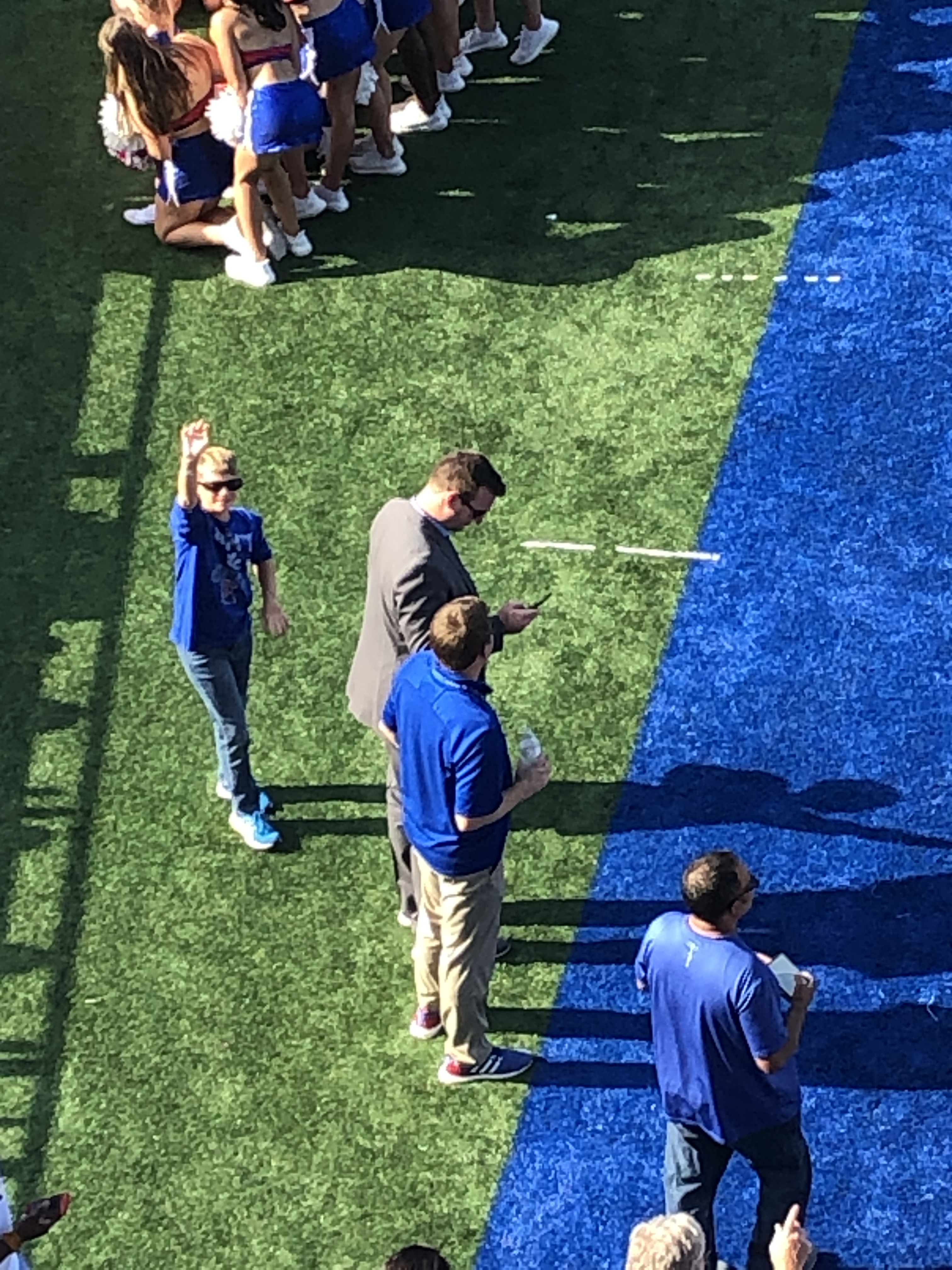 Saturday we tailgated, ate more yummy food, watched the ballgame from the DAC (aka air conditioned and catered food environment) and the kids stole the half time show with Pappy!