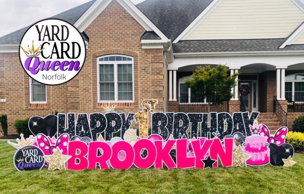 About that small business I started during a global pandemic. September 8, 2020 we made our initial investment and became Yard Card Queen – Norfolk! Maybe you’ve heard of it and maybe you are like most when I say yard cards. That look, I can see it now, “what’s yard cards?!?!?” In short, we are a yard greeting rental company that specializes in celebrating anything and most everything! Here’s a visual.
